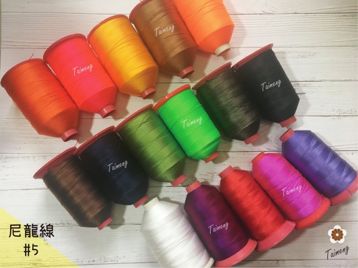 🔹產品說明: 尼龍材質紗線捻合而成,生產出來的線有一定拉伸力、拉力較強、有光澤、耐高溫、高速、主要適用於皮革、帆布類縫紉用,如:鞋業、包袋業、沙發業等。尼龍線是適用最為普通的皮革縫紉線。線徑由細到粗排列 #50(最細)、#40、#30、#20、#10、#5(最粗)。