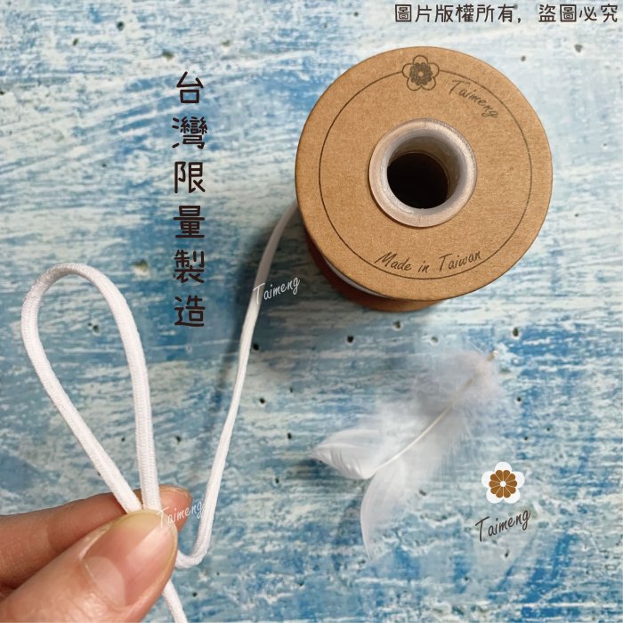 🔹產品說明:拋棄式的口罩鬆緊帶專用,材質使用品質好的彈性尼龍,讓繩子本身增加了耐用度,質地又非常柔軟親膚舒適,只有我們台孟才會用料好價格實在👍標榜的台灣製造哦🥳