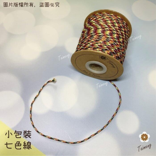 🔹產品說明:七色線是由黑、白、紅、黃、綠、紫、粉組成,可招貴人、桃花、開智慧用,額外加上的金蔥更有財運再加持的效果!求姻緣建議賣場的紅紗線、七色線,爛桃花則可使用五色線,而此款材質不會退色,可碰水,可曬太陽。