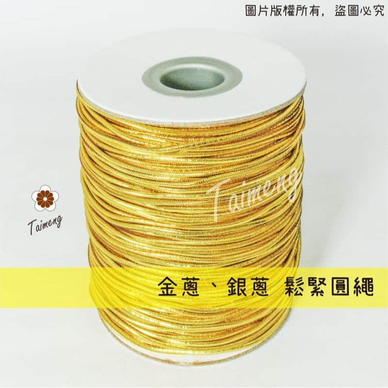 台孟牌 1.2mm 1.5mm 彈性 金蔥 銀蔥 圓鬆緊帶 大包裝 台灣製造 金線束帶 包芯 彈力鬆緊繩 禮品禮盒 吊牌