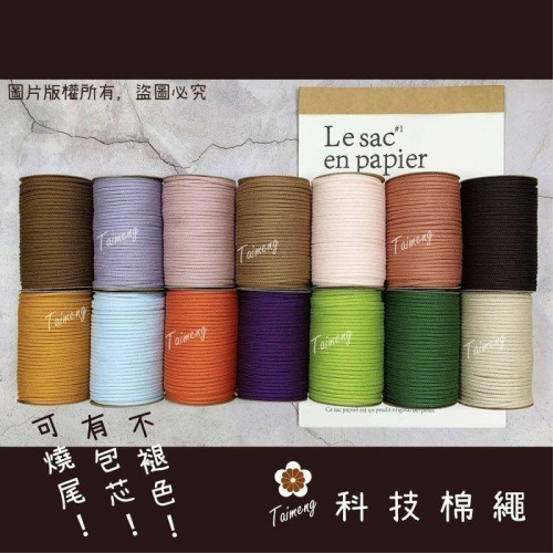 台孟牌 包芯 科技 棉繩 5mm 30色 大包裝 台灣製造 小花 吊飾 轎繩 編織 鞋帶 束口繩 手提繩 Macrame