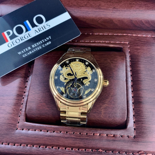 此商品為 POLO GEORGE ARIES 機械款 金龍土豪金鋼錶