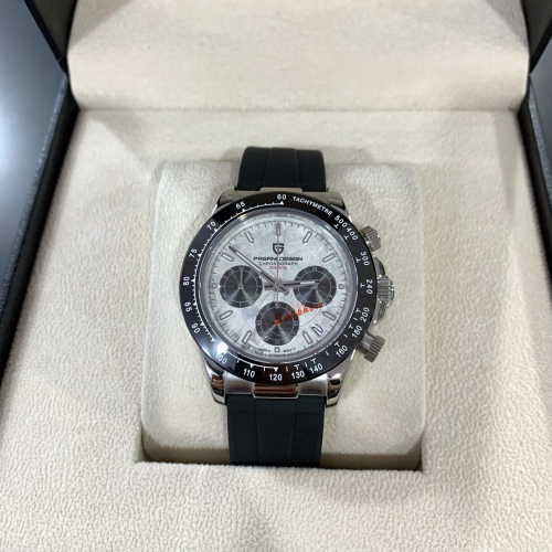 石英款 真三眼計時 結晶面橡膠錶(2色可選)