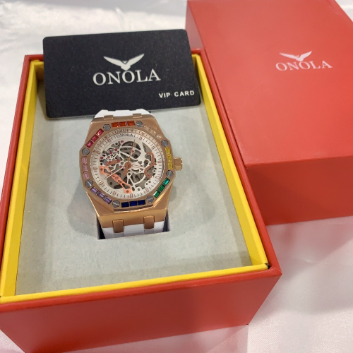 此商品為 ONOLA 彩色晶鑽 機械錶 半簍空八角橡膠錶