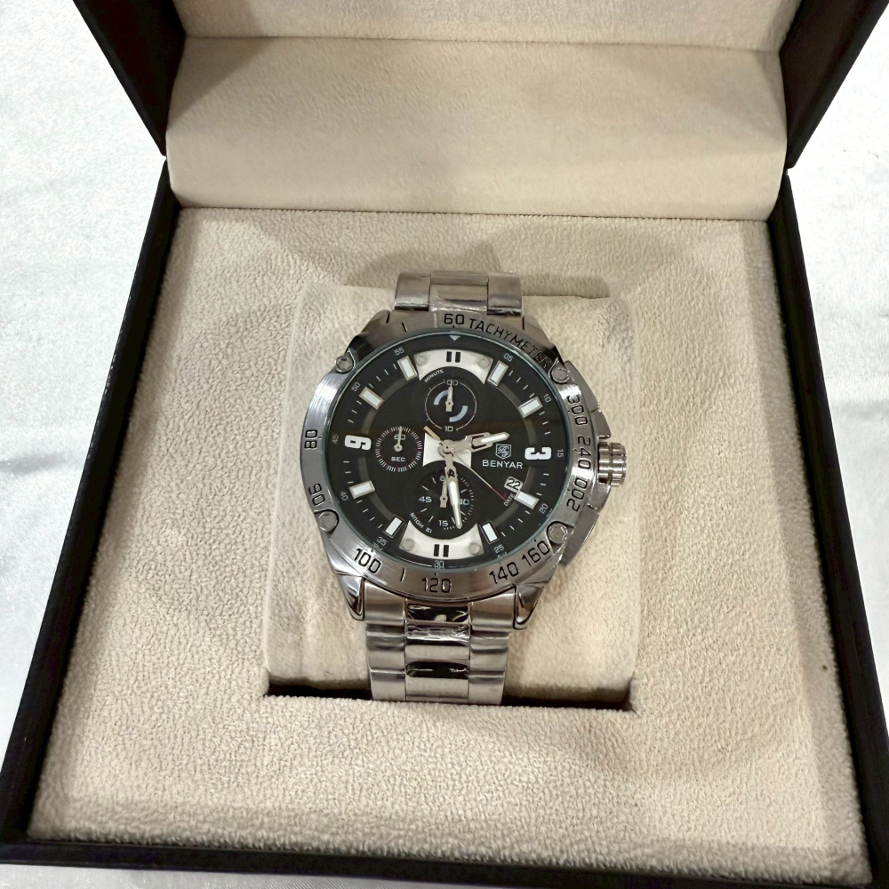 此商品為 Benyar 賓雅 石英款 真三眼計時鋼錶