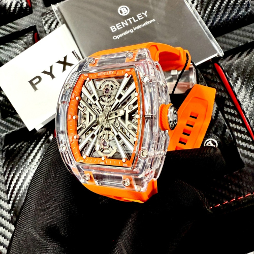 【賓利|全新】現貨 BENTLEY 手錶 機械錶 男錶 簍空 酒桶錶 專櫃保固 橡膠錶|Little Bee 小蜜蜂精品