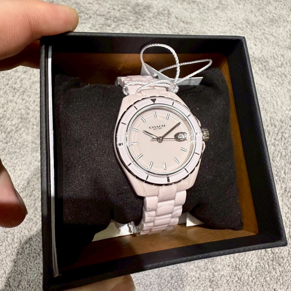【蔻馳|全新】現貨 COACH 手錶 石英錶 女錶 粉紫色 C字日期 陶瓷錶 送禮推薦|Little Bee 小蜜蜂精品