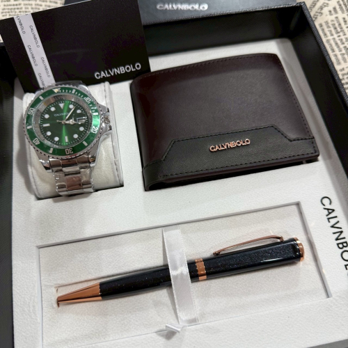 此商品為 CALVNBOLO 凱文保羅 禮盒組 水鬼鋼錶 + 原子鋼筆 + 短夾