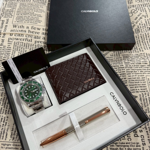 此商品為 CALVNBOLO 凱文保羅 禮盒組 水鬼鋼錶 + 原子鋼筆 + 短夾