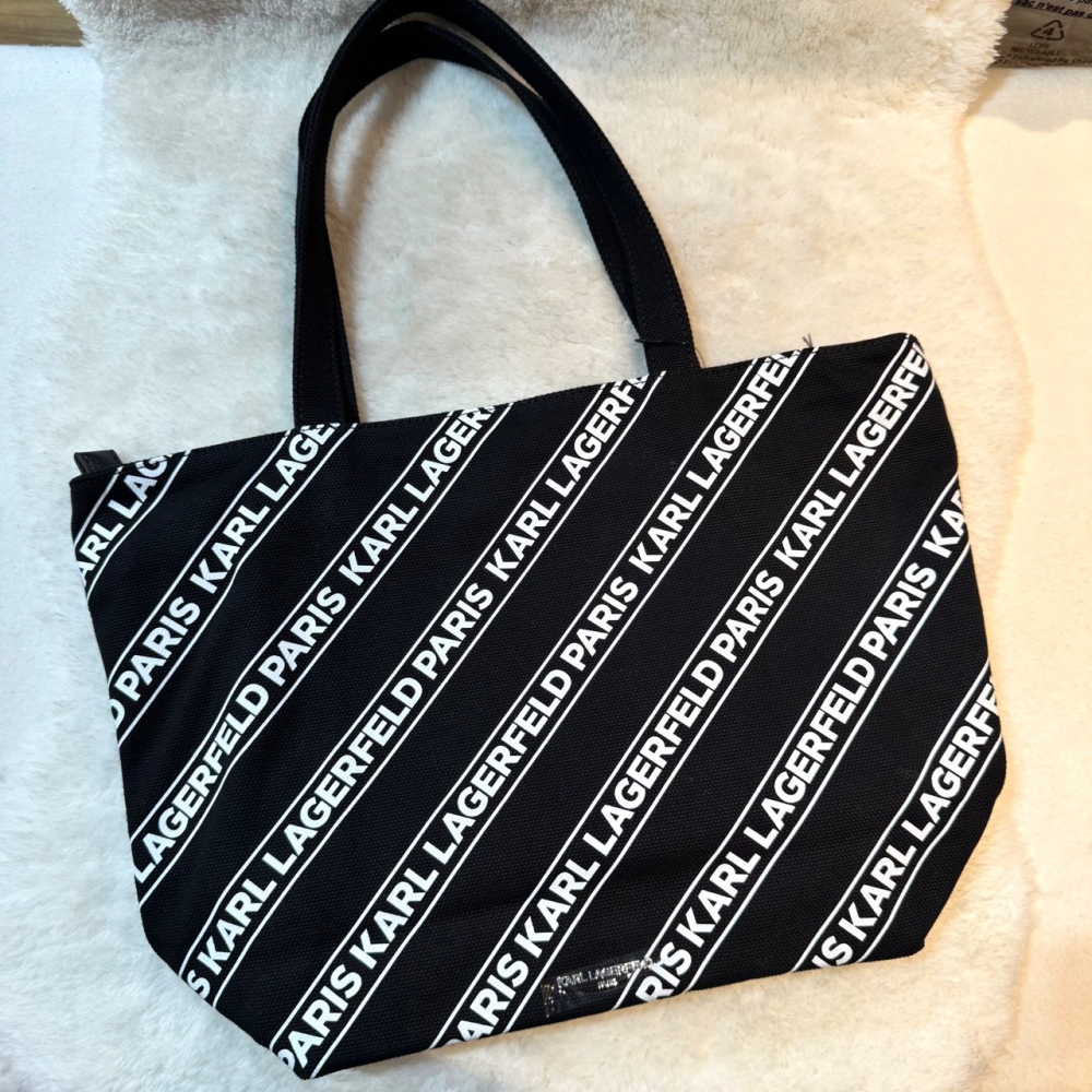 【卡爾|全新】現貨 KARL LAGERFELD 滿版 文字款 帆布 拖特包|Little Bee 小蜜蜂精品