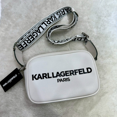 【卡爾|全新】現貨 KARL LAGERFELD 相機包 經典款 文字 雙拉鍊 斜背包|Little Bee 小蜜蜂精品