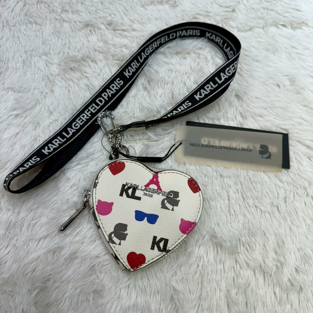 此商品為 KARL LAGERFELD 卡爾 銀標 可掛脖 愛心零錢包