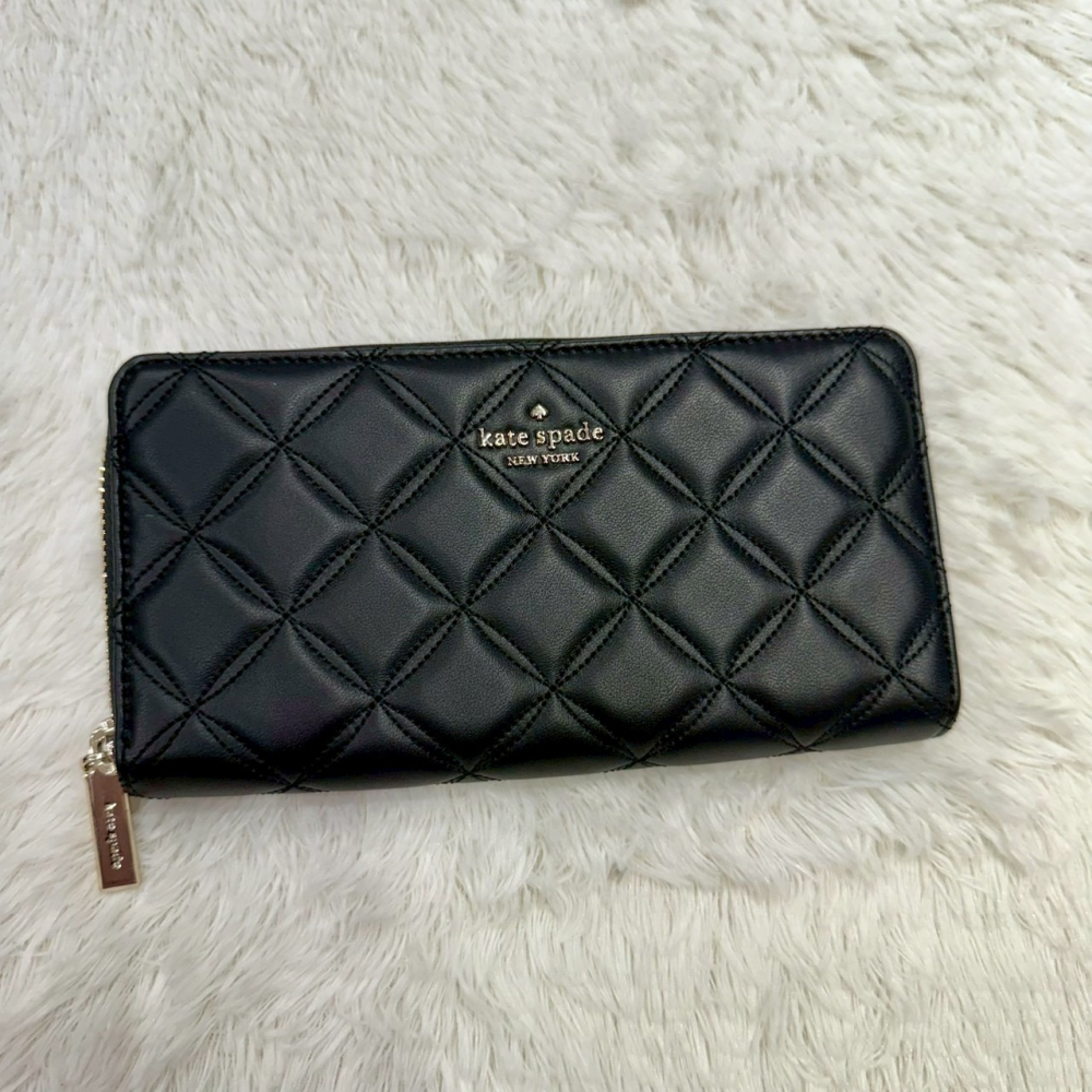 【KS|全新】現貨 KATE SPADE 錢包 長夾 金標 菱格紋 小香風 拉鍊長夾|Little Bee 小蜜蜂精品