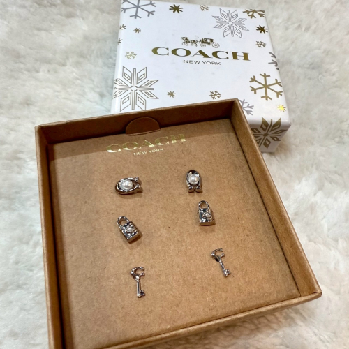【蔻馳|全新】現貨 COACH 耳環 禮盒 三件組 禮盒 耳針 C字 鎖頭 鑰匙|Little Bee 小蜜蜂精品