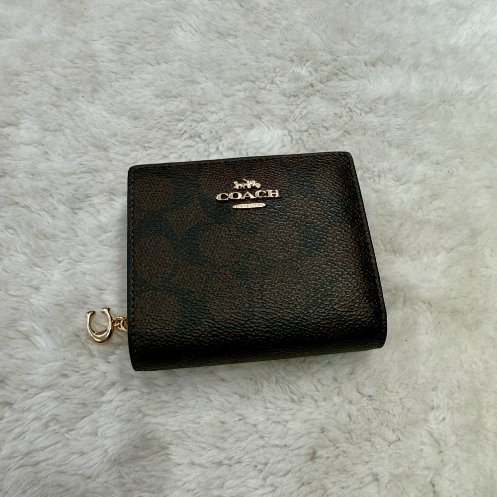 【蔻馳|全新】現貨 COACH 錢包 短夾 金標 C字拉鍊 咖色 滿版 老花 零錢短夾|Little Bee 小蜜蜂精品