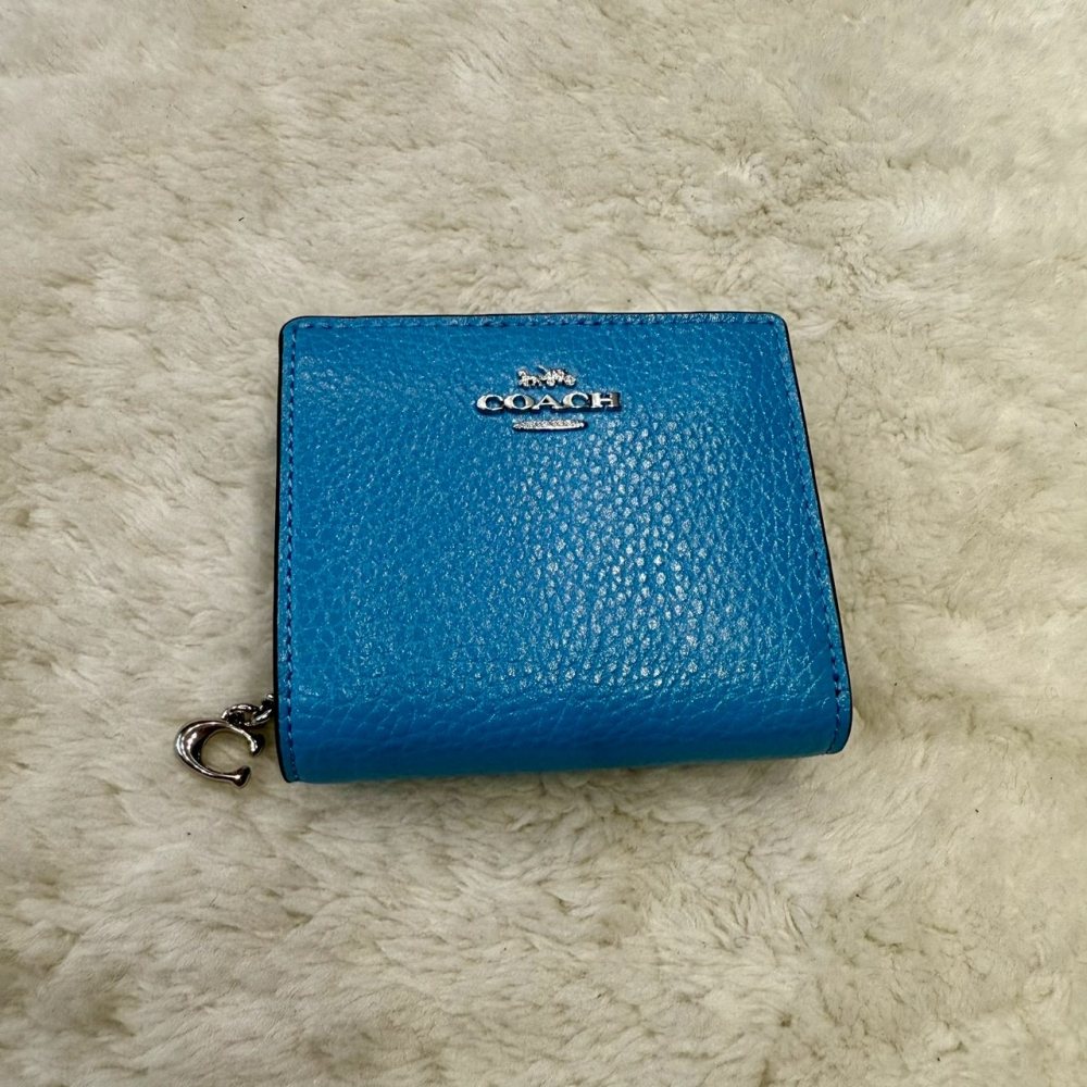 此商品為 COACH 銀標 亮面寶寶藍 C字拉鍊 零錢短夾
