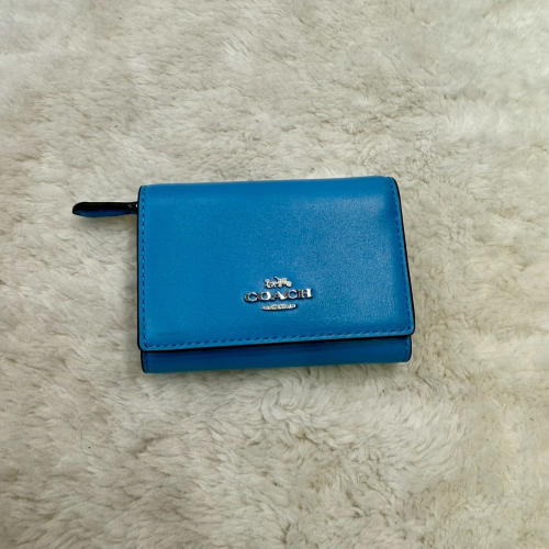 此商品為 COACH 金標 滑面寶寶藍 三折短夾