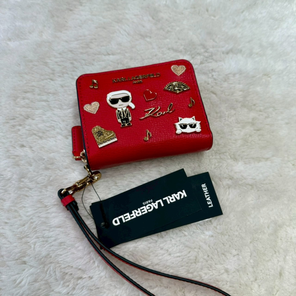 【卡爾|全新】現貨 KARL LAGERFELD 錢包 短夾 滿版 Q版鐵標 零錢短夾|Little Bee 小蜜蜂精品