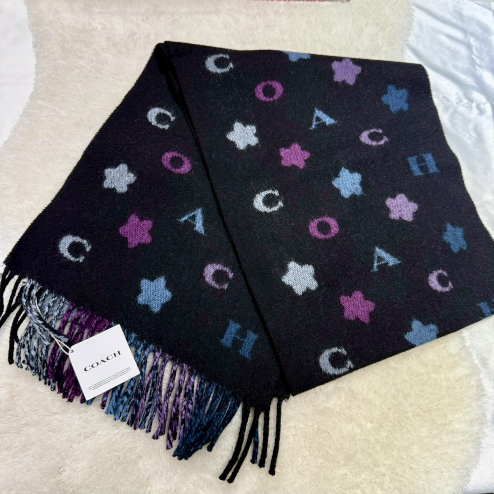 【蔻馳|全新】現貨 COACH 圍巾 滿版 C字 星星 羊毛 羊絨 送禮推薦|Little Bee 小蜜蜂精品