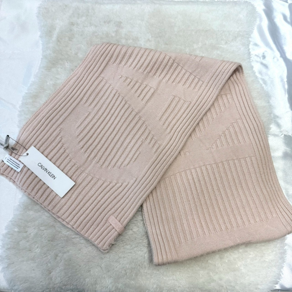【CK|全新】現貨 CALVIN KLEIN 圍巾 針織LOGO 粉色 圍脖 送禮推薦|Little Bee 小蜜蜂精品