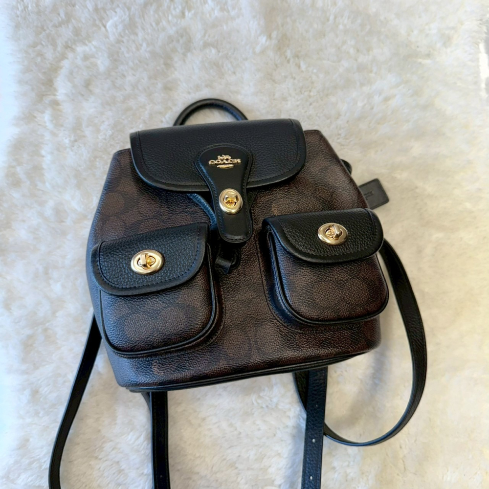 【蔻馳|全新】現貨 COACH 包包 後背包 金標 咖色滿版 小號 雙肩包 送禮推薦|Little Bee 小蜜蜂精品