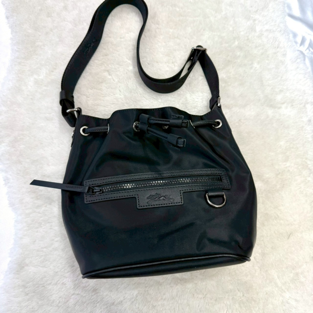 【LONGCHAMP|全新】現貨 包包 水桶包 尼龍 小標 黑色 斜背包|Little Bee 小蜜蜂精品
