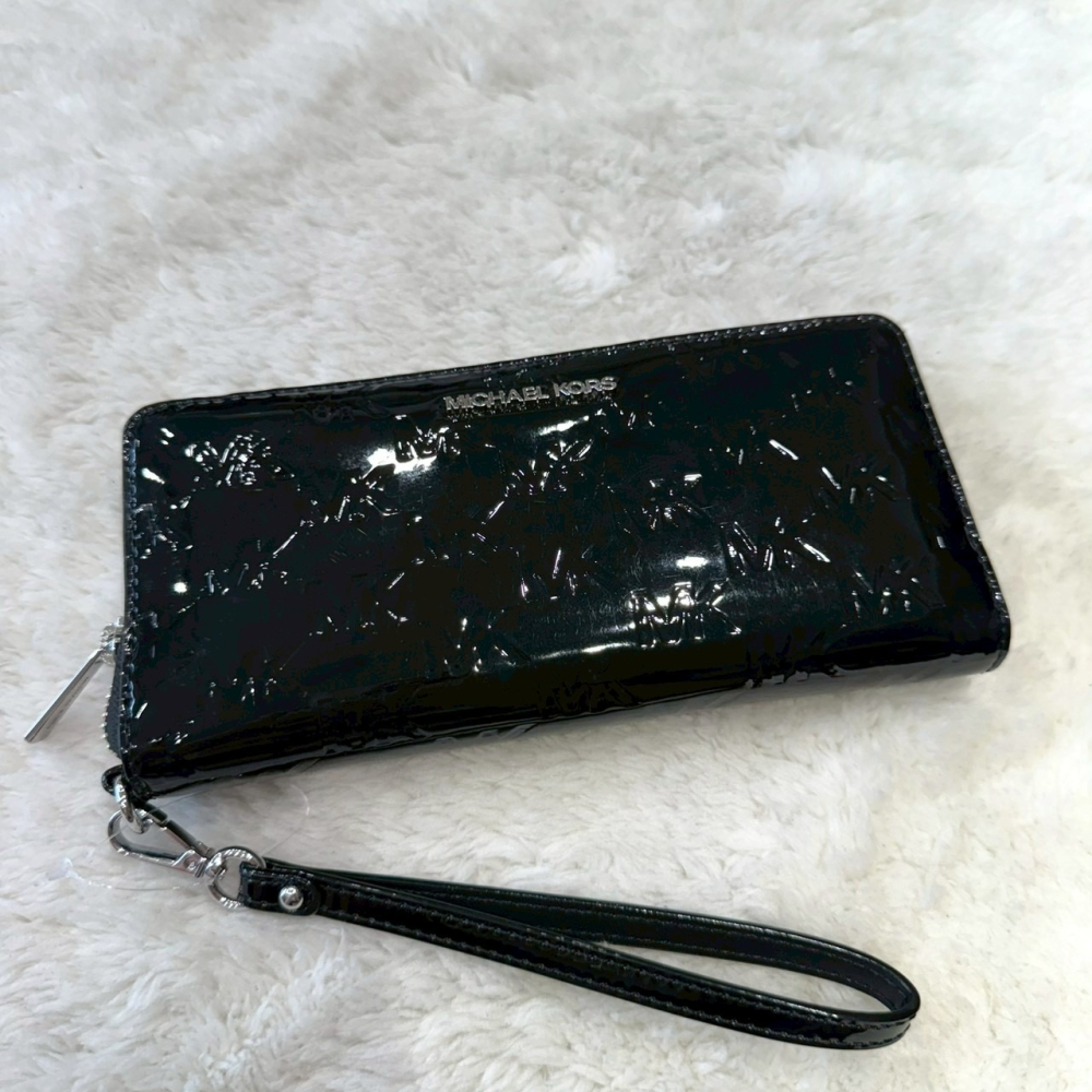 此商品為 MICHAEL KORS MK 銀標 漆皮滿版 全開式 拉鍊長夾