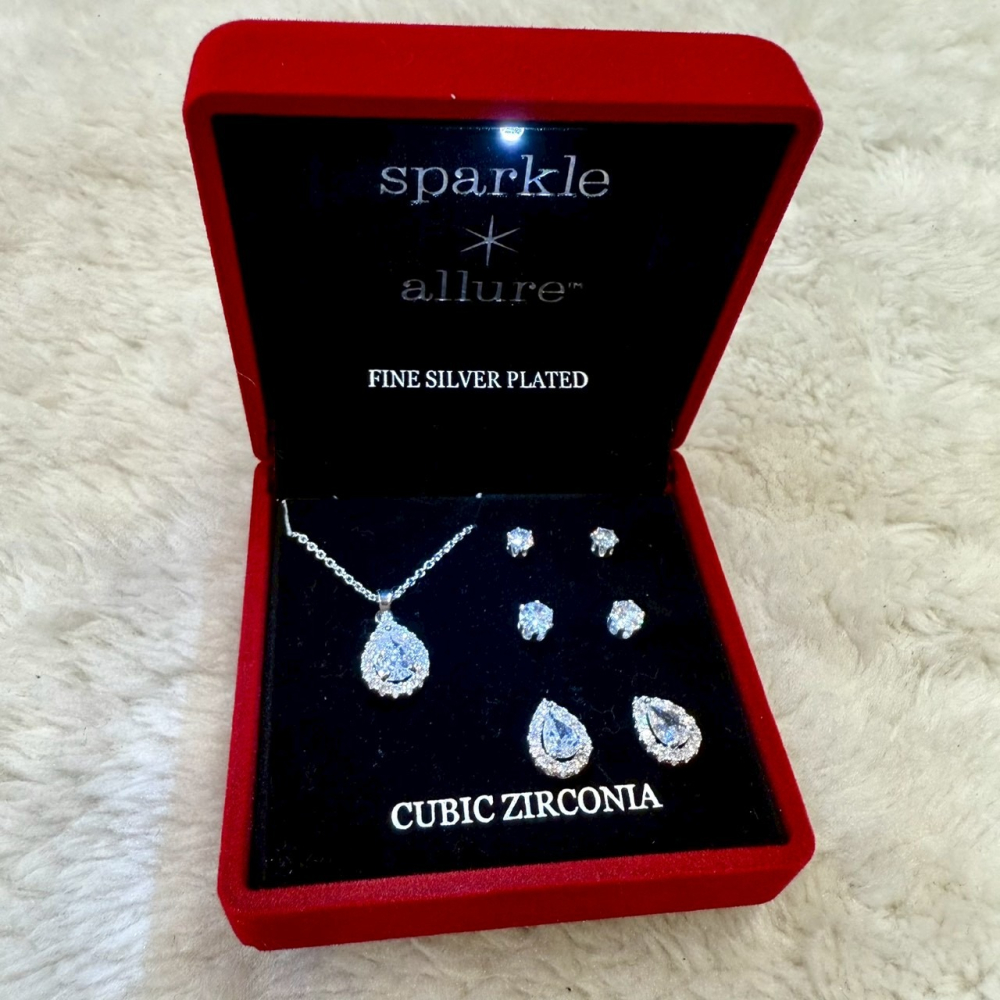 此商品為 美國代購 SPARKLE ALLURE 鋯石 耳針 耳環 項鍊 禮盒組