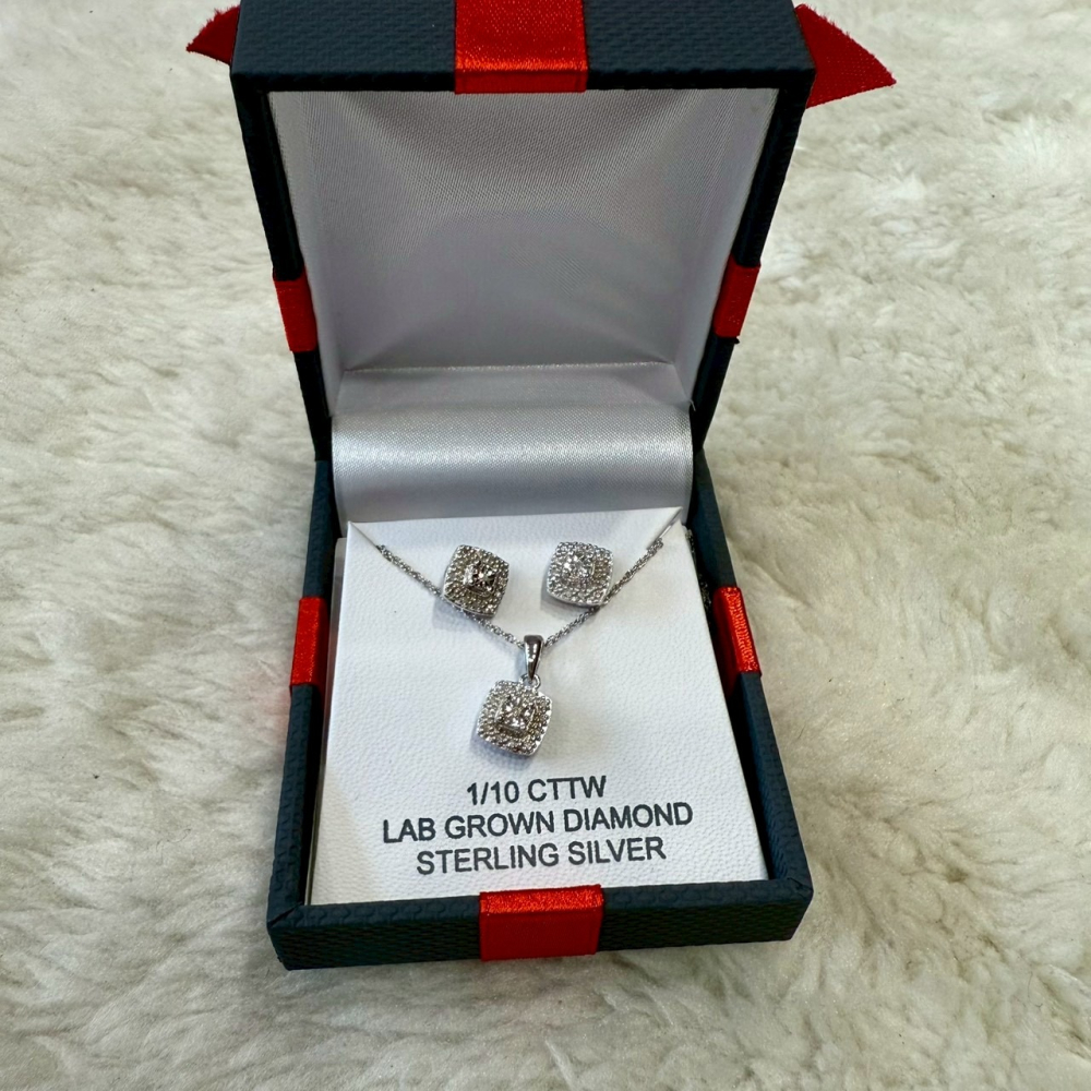 此商品為 JC PENNEY 真鑽 純銀 耳釘 耳環 項鍊 禮盒組