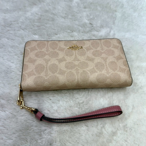 【蔻馳|全新】現貨 COACH 錢包 長夾 金標 滿版 奶茶色 老花 拉鍊長夾|Little Bee 小蜜蜂精品