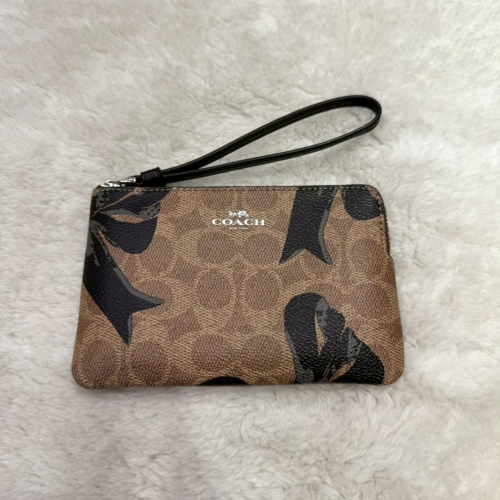 【蔻馳|全新】現貨 COACH 錢包 手拿包 小號 銀標 滿版 蝴蝶結 零錢包|Little Bee 小蜜蜂精品