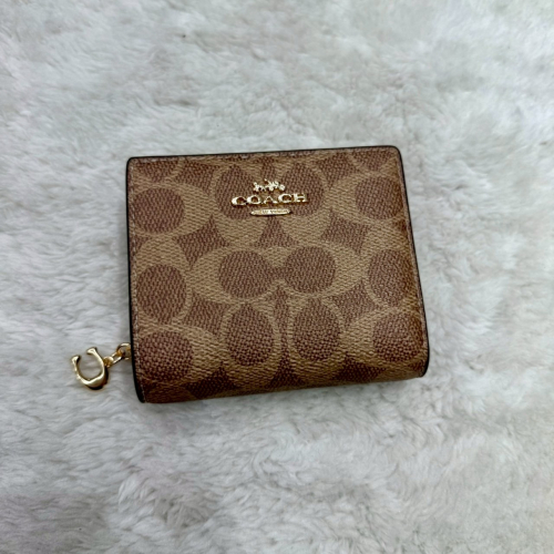 【蔻馳|全新】現貨 COACH 錢包 短夾 金標 C字拉鍊 咖色 老花 滿版 零錢短夾|Little Bee 小蜜蜂精品