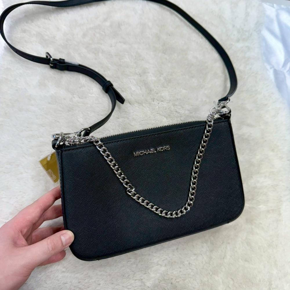 【MK|全新】現貨 MICHAEL KORS 包包 麻將包 黑色 鍊條 防刮紋 斜背包|Little Bee 小蜜蜂精品
