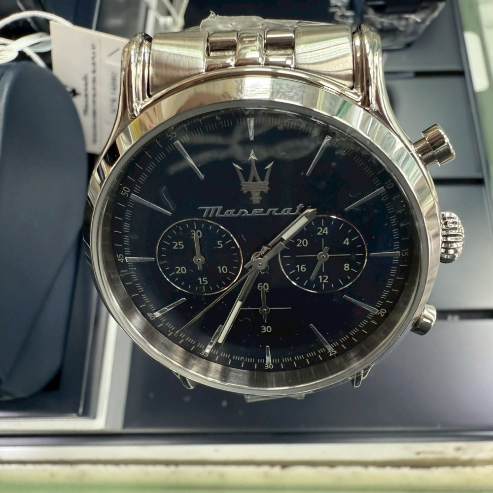 【瑪莎拉蒂|全新】現貨 MASERATI 手錶 石英錶 計時功能 藍面 專櫃保固 鋼錶|Little Bee 小蜜蜂精品