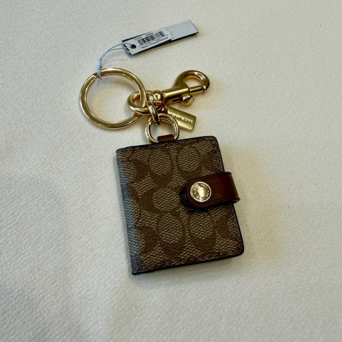 【蔻馳|全新】現貨 COACH 包包吊飾 相片夾 小書造型 咖滿版 可掛任何包 鑰匙圈|Little Bee 小蜜蜂精品