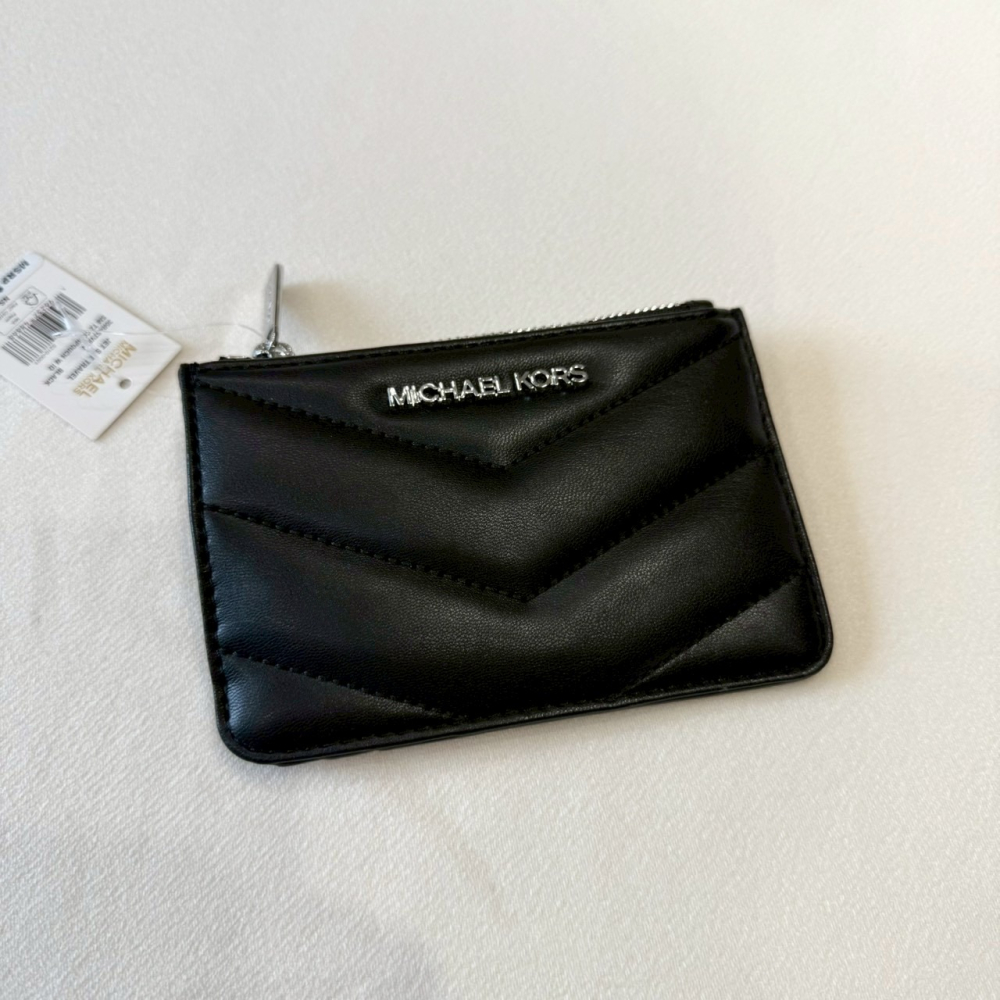 【MK|全新】現貨 MICHAEL KORS 錢包 零錢包 軟皮 斜紋 黑色 卡夾|Little Bee 小蜜蜂精品