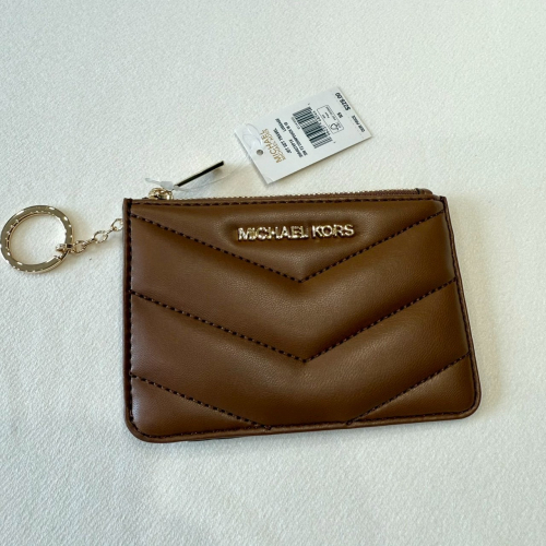 【MK|全新】現貨 MICHAEL KORS 錢包 零錢包 軟皮 斜紋 棕色 卡夾|Little Bee 小蜜蜂精品