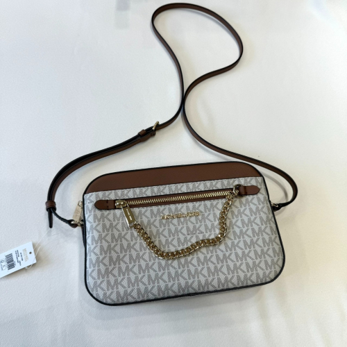 【MK|全新】現貨 MICHAEL KORS 包包 相機包 金標 滿白 防刮紋 斜背包|Little Bee 小蜜蜂精品