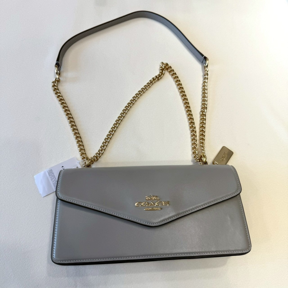 【蔻馳|全新】現貨 COACH 包包 風琴包 金標 信封款 水泥灰 滑皮 鍊條 斜背包|Little Bee 小蜜蜂精品