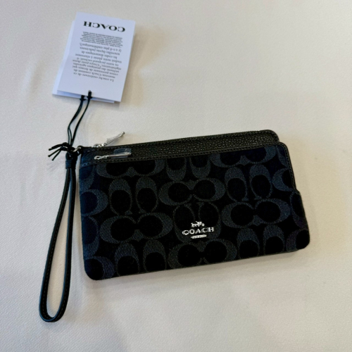 此商品為 COACH 銀標 滿版緹花布 大號 雙層手拿包