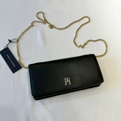 此商品為 TOMMY HILFIGER 湯米 金標 滑皮 掀蓋WOC鍊條包
