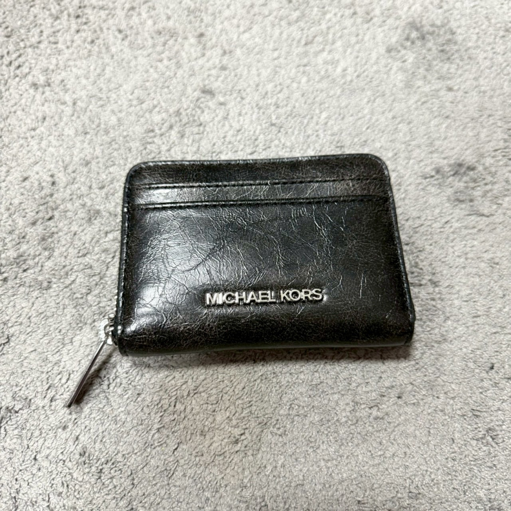 此商品為 MICHAEL KORS MK 銀標 仿舊油蠟皮紋 零錢卡夾包