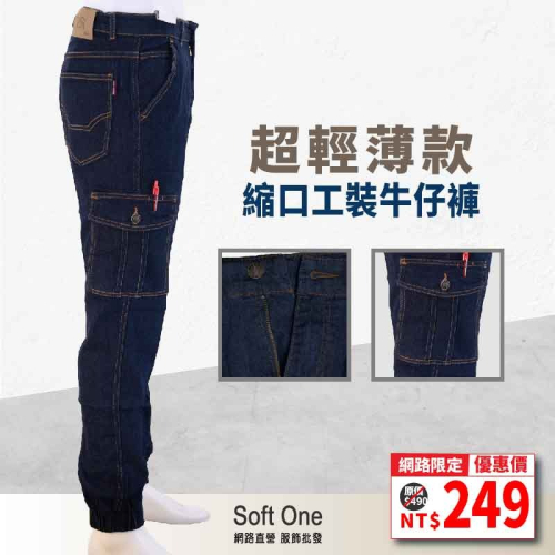 💦筆插縮口牛仔工作褲