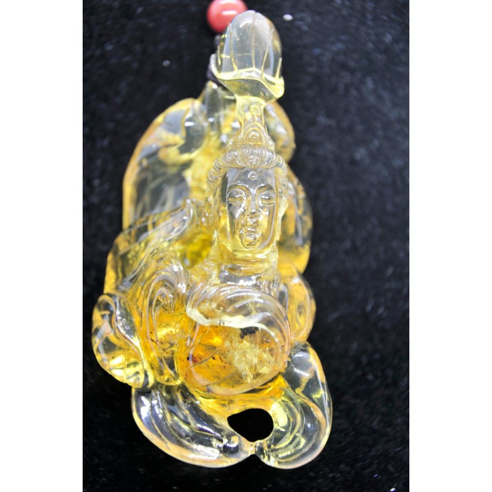 多米尼加藍珀 多明尼加藍珀 藍珀觀音-花開現佛(90%乾淨度)(付大師收藏證書)(付GIC檢定證書)