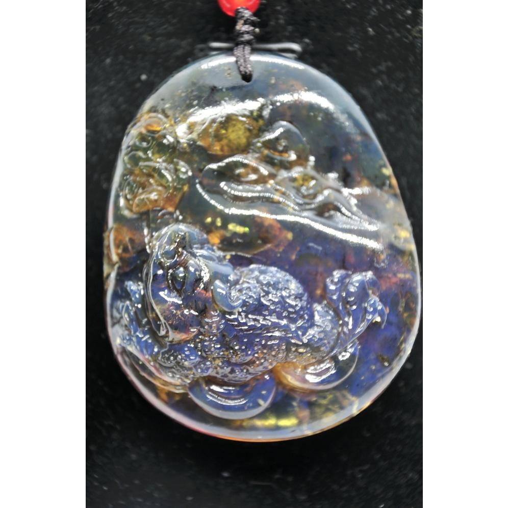 多米尼加藍珀 多明尼加藍珀 藍珀三足金蟾(付大師收藏證書)(付GIC檢定證書)