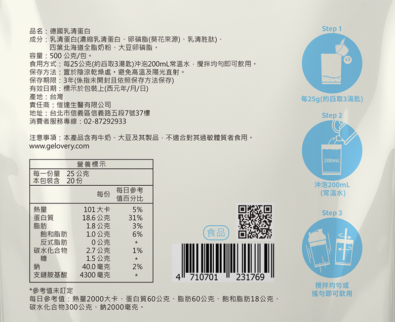 德國Lactoland濃縮乳清蛋白『 單包500g 』(奶素)