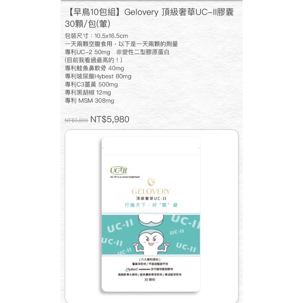 《絕版商品》Gelovery 頂級奢華UC-I膠囊 30顆/包🉑️ 用折價券