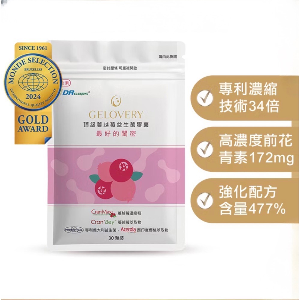 Gelovery 頂級蔓越莓益生菌膠囊 30顆/包🉑️ 用折價券