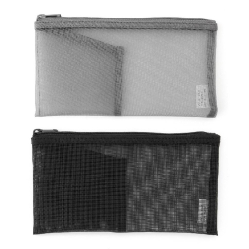 【MUJI 無印良品】尼龍網眼筆袋 - 附袋(黑 / 灰)