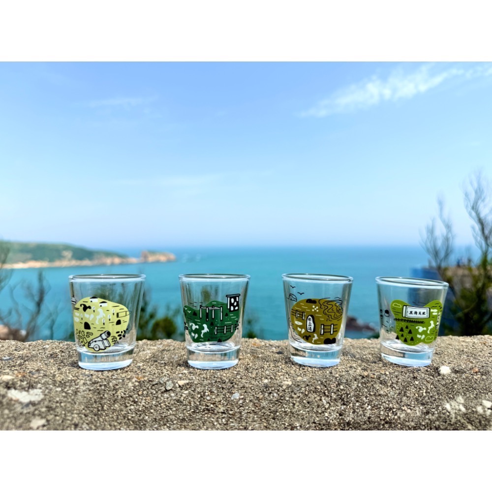 同島系列酒杯將馬祖四座代表性軍事地景濃縮進一只只小巧玻璃杯裡。
